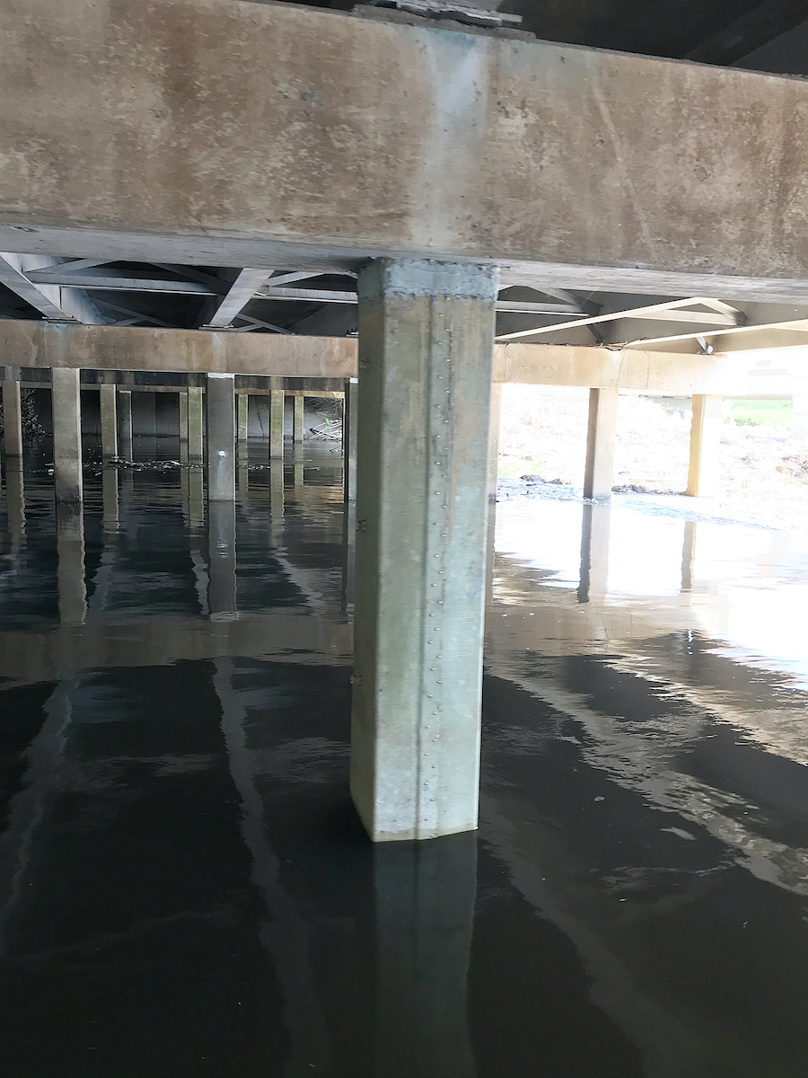A recent inspection in early 2020 revealed that the Series 500 System was performing as designed after 17 years in service. Furthermore, the system was able to provide additional abrasion and impact resistance that protected the piles from major Hurricane’s Rita and Ike in 2007 and 2008. Tidal surges from these storms brought in destructive flotsam and debris that impacted many of the piles along the I-45 corridor from Galveston to Houston, however this bridge withstood any damage due to the robust Series 500 System.