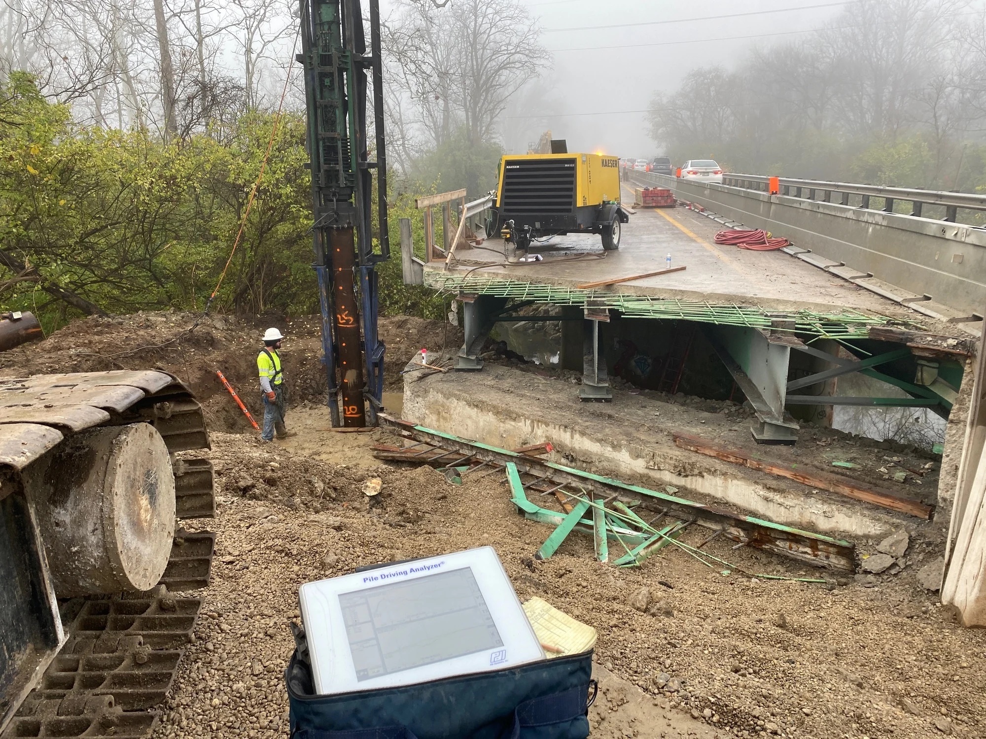 - Pile Driving Analyzer® (PDA): The PDA evaluates driven pile capacity, hammer performance and structural integrity during installation of driven piles with strain gages and accelerometers attached to the pile. The dynamic testing method provides reliable capacity measurements and integrity assessment as the pile is driven, with further capacity evaluation at restrike. With PDA testing a project can avoid or reduce static load testing which is a completely separate operation that requires days to set up reaction systems and perform the tests. Dynamic testing is also an option utilized for drilled foundations, using a drop weight to deliver the required impact energy.