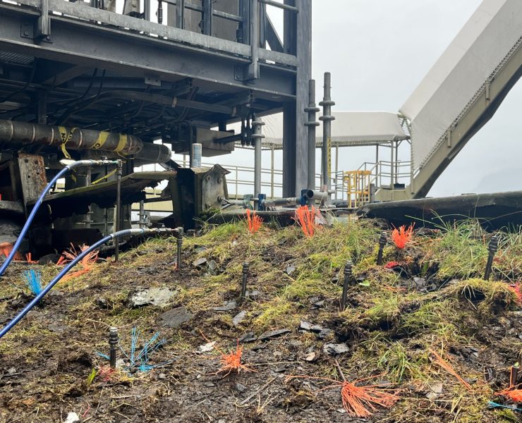 With regard to the later use of the structures, in order to prevent any interference currents during subway operation, at least 10% of the maximum reinforcement cross-section for all reinforcement cages must be electrically through-connected and integrated into the overall structure. The connections between the reinforcement bars, which are overlapped by up to five cage sections per pile, are carried out by directly welding the reinforcement bars using a 4 cm welding bead during the installation process on the construction site.