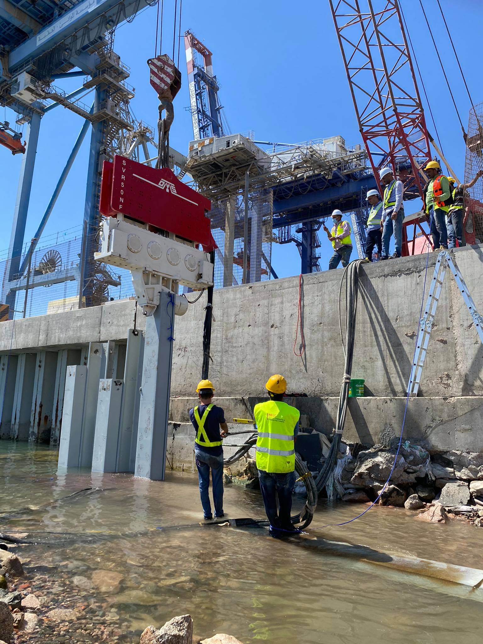 Our range of vibrodriver H/HD with standard frequency and fixed eccentric moment. This robust range adapts to applications needing to drive sheet piles and casings with total weights up to 150 tons which makes it the largest range of “Heavy Duty” Vibrodrivers in the world.