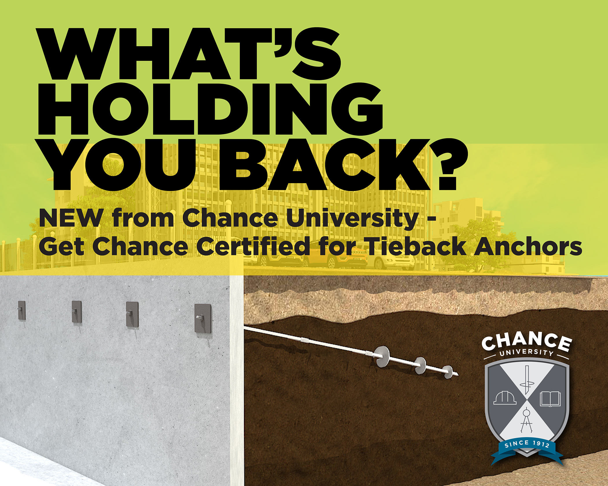 Chance helical tieback anchors are a pre-engineered mechanical anchoring system providing stability for permanent and temporary shoring applications. Responding to industry demand for online installation training covering tieback anchor installation and best practices, Chance Foundation Solutions is pleased to offer free certification training for Chance Helical Tieback Anchors.