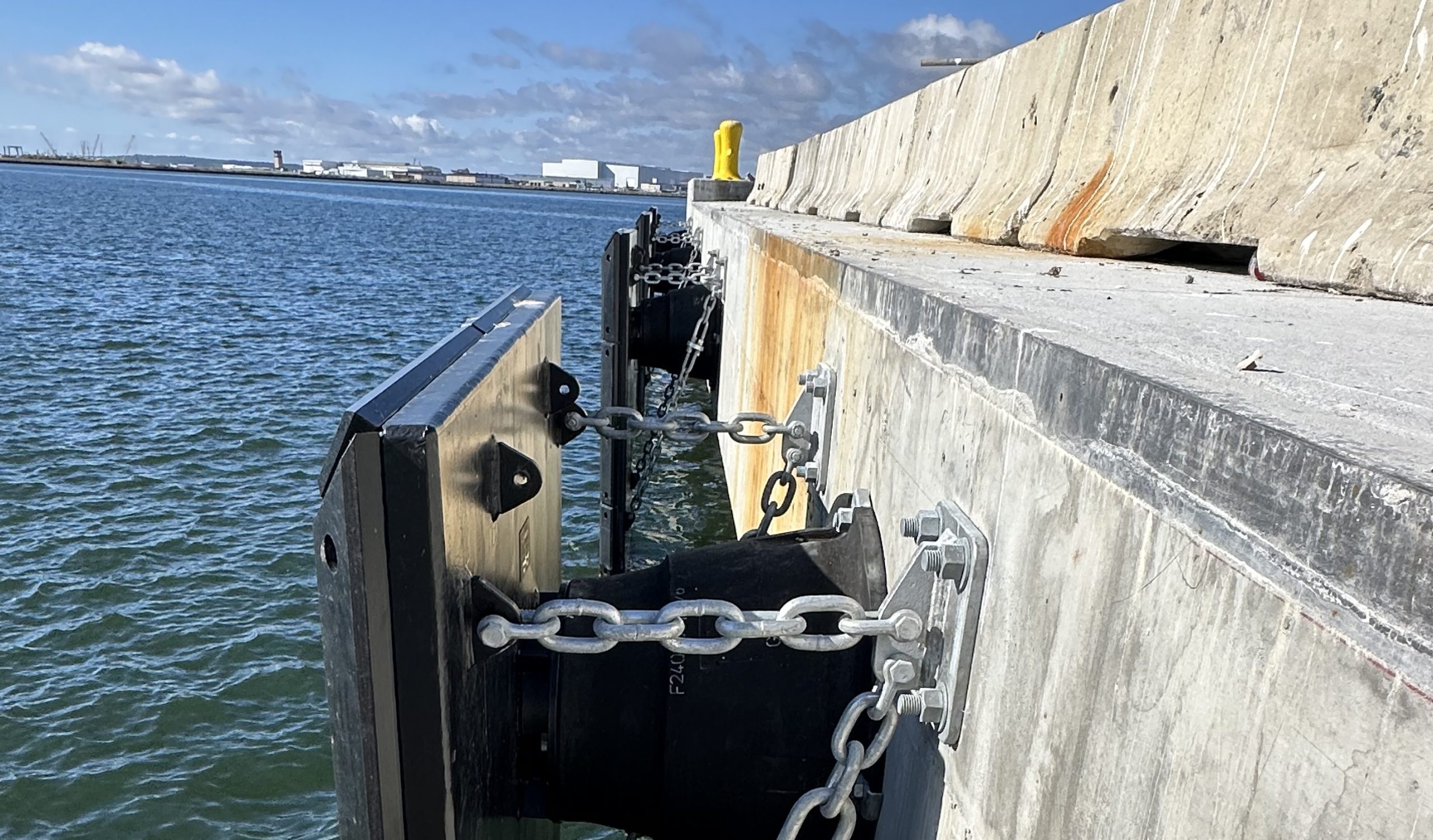 SFT designed, and delivered in late 2025, 12 Cone Fender Systems (SPC 1200 and SPC 600), each equipped with closed box steel panels ranging from 3000×3962 mm down to 1828×3352 mm, and 10 Ocean Guard Fender Systems (Ø1524×4260 mm). The order scope also included 33 Bollards (various types and load capacities), 2 DD Corner Fender Systems (500×500 mm) and 3 Laminated Pile Wrap Fenders manufactured by our partner company Schuyler Rubber.