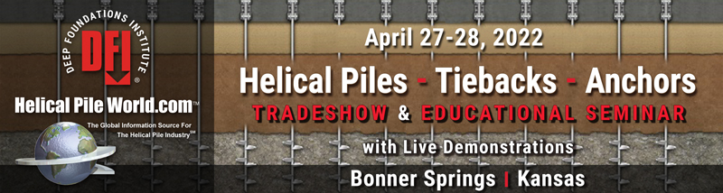 Helical Pile World (HPW) and Deep Foundations Institute (DFI) are teaming up to showcase the helical pile and tieback industry’s dedication to producing high-quality, safe, reliable and cost-effective foundation solutions for a variety of foundation and utility application challenges. The event will include a structured technical education program, indoor and outdoor equipment exhibition, and live installation demonstrations that highlight the products, resources and expertise used to design, install, and test helical pile and anchor elements for structural support and earth retention applications.