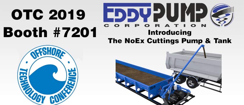EDDY Pump will be introducing the NoEx Cuttings Pump & Tank at the 2019 Offshore Technology Conference in Houston, Tx on May 6th. Booth #7201. Over 2000 companies will be covering 500,000+ SF of booth space, with over 61,000 attendees. All things offshore and onshore related to oil will be present.