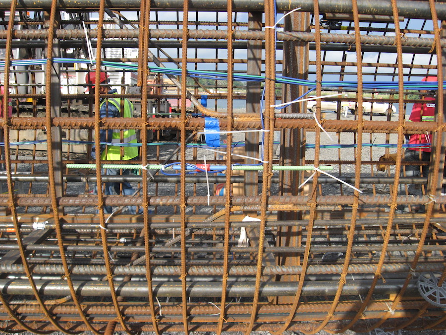 Instrumentation embedded in the pile captured data on the pile’s geotechnical response to the applied test loads. The instrumentation brackets the zones of interest in order to establish the capacity contribution each zone makes to the overall pile capacity during the test.