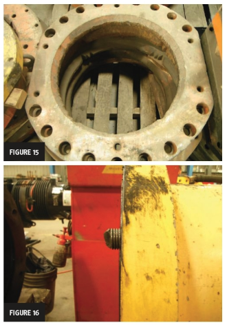 FIGURE 6. A pile hammer that has little to no oil in it. This results in increased friction while driving. The driving energy is lowered, and the heat increases, causing stress within the hammer body. Pitting of the hammer bore and crack formation can result over time. This may require cylinder re-sleeving and/or weld repair of the external hammer body.