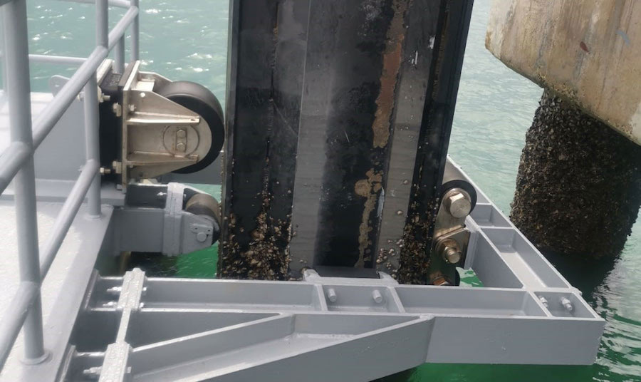 With the extra cushioning on SFT´s Cushion Rollers, the main impacts can be dampened while the pontoon is rolling up and down with the swell and tides.